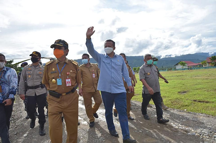Kedatangan Menteri disambut Gubernur Sulawesi Tengah Drs. H. Longki Djanggola, M.Si, bersama Bupati Parimo Samsurizal Tombolotutu, unsur Forkopimda dan Kepala OPD.