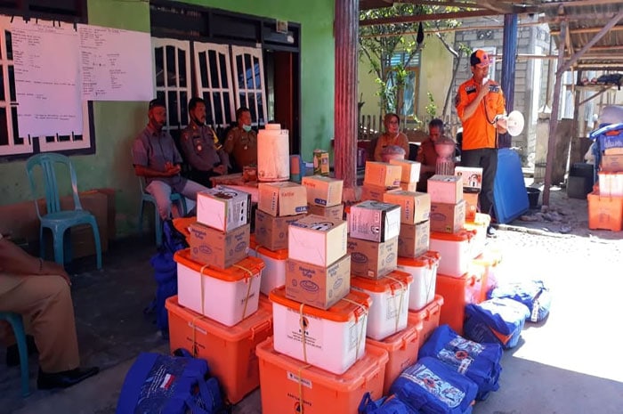 Senin 13 Juli 2020, kalau ada bantuan yang akan masuk, ditampung kemudian langsung diserahkan kepada korban.