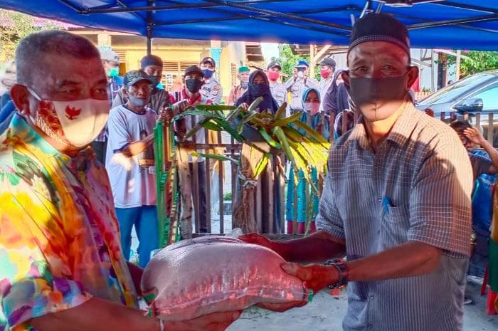 Diketahui, bantuan itu berupa sembako, matras dan lain sebagainya diserahkan secara simbolis kepada 12 Kepala Keluarga.