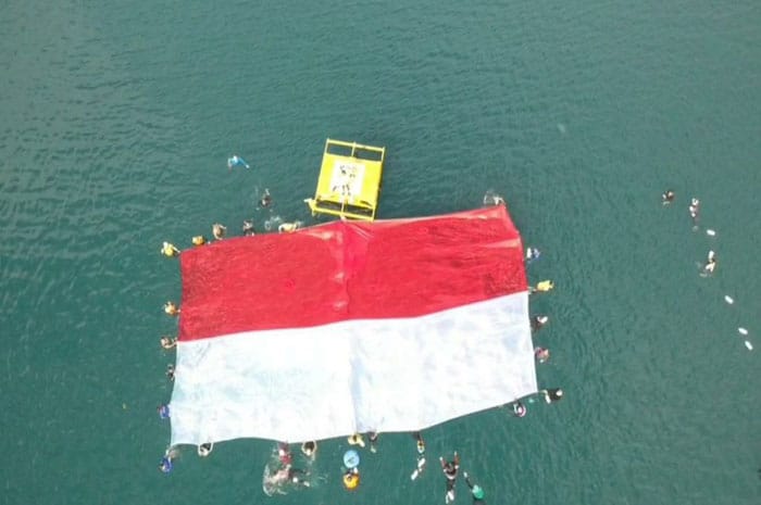 Komunitas Swimming Club Palu, melakukan pembentangan bendera berukuran tujuh belas meter dan lebar delapan meter.