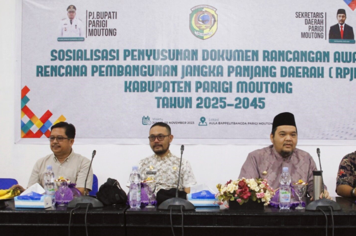 Parigi Moutong, gemasulawesi – Pada hari Jumat, tanggal 3 November 2023, Badan Perencanaan Pembangunan, Penelitian dan Pengembangan Daerah (Bappelitbangda) Parigi Moutong menggelar Sosialisasi Penyusunan Dokumen Rancangan Awal Rencana Pembangunan Jangka Panjang Daerah (RPJPD).
