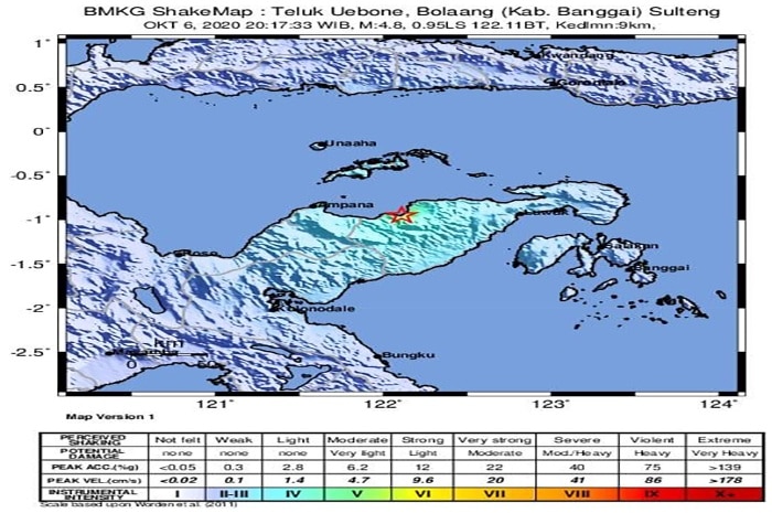 Selasa 6 Oktober 2020 pukul 21.17 WITA, BMKG mencatat gempa tepatnya berlokasi di Teluk Uebone Kabupaten banggai Provinsi Sulteng.