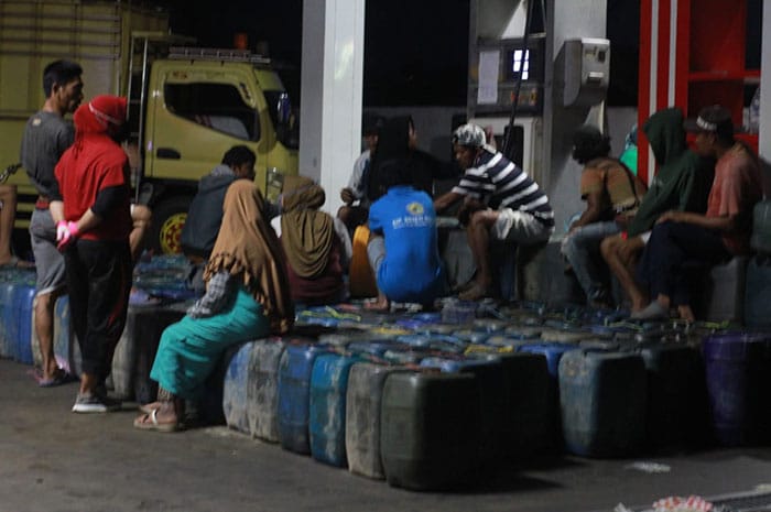 “Milik petani dan nelayan pak itu Sebagian. Ada rekomendasinya dari Kepala desa,” terang warga yang mengaku mengatur dan mengamankan proses antrian.