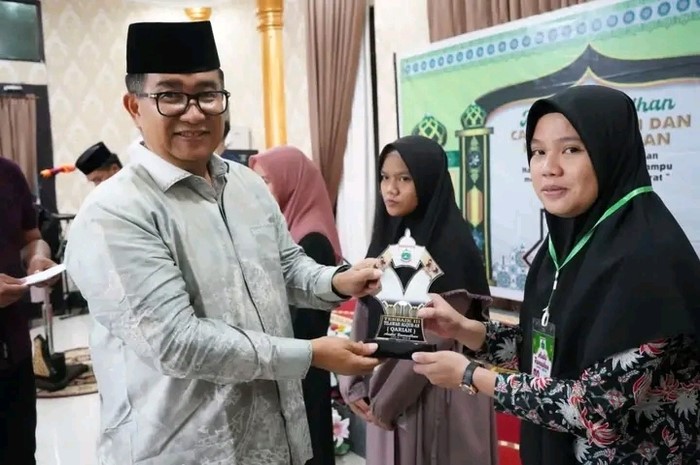 “Kategori Hafalan 1 Juz Putra, Terbaik 1 Ahmad Fauzan, Terbaik Kedua Sahab Mubarak AR untuk terbaik Ketiga Tamzil Ibnu Mubarak,” kata Akmal Malik.