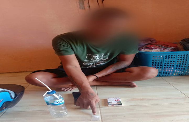Ia dibekuk aparat Satuan Narkoba, di Jalur Dua, Kompleks Pura Agung, Kelurahan Bungin Timur, Kecamatan Luwuk, Minggu 14 Februari 2021.