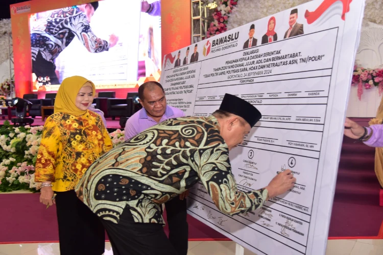 Kota Gorontalo, gemasulawesi – Bawaslu Provinsi Gorontalo mendeklarasikan kampanye damai bersama dengan 4 paslon atau pasangan calon untuk Pilkada pada tanggal 27 November 2024.