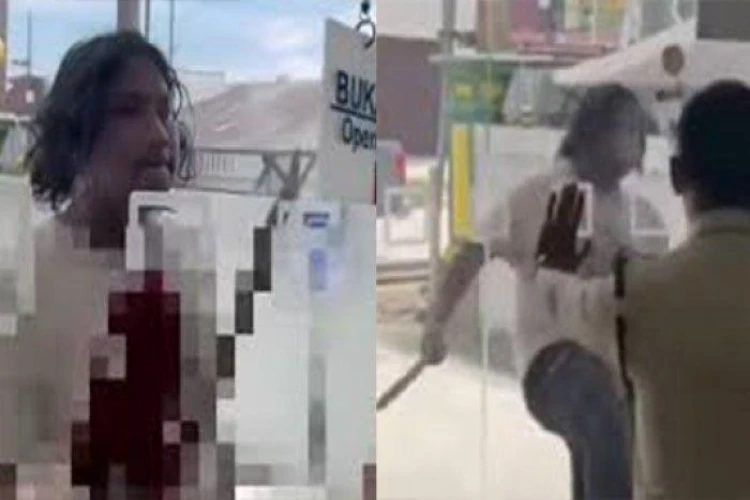 Dari video yang beredar luas di media sosial, pria tersebut terlihat merusak kaca pintu masuk bank dan sebuah mesin ATM.