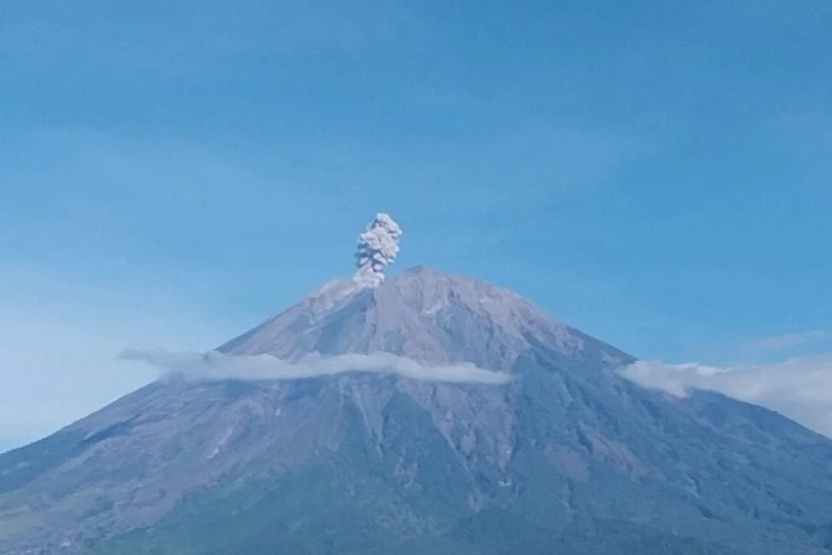 Rekaman CCTV menunjukkan abu vulkanik yang berwarna putih keabu-abuan membumbung dari puncak Gunung Semeru.