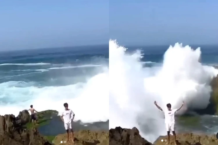Namun nasib malang menimpanya ketika ombak besar menghantam tebing dan menyeretnya ke laut.