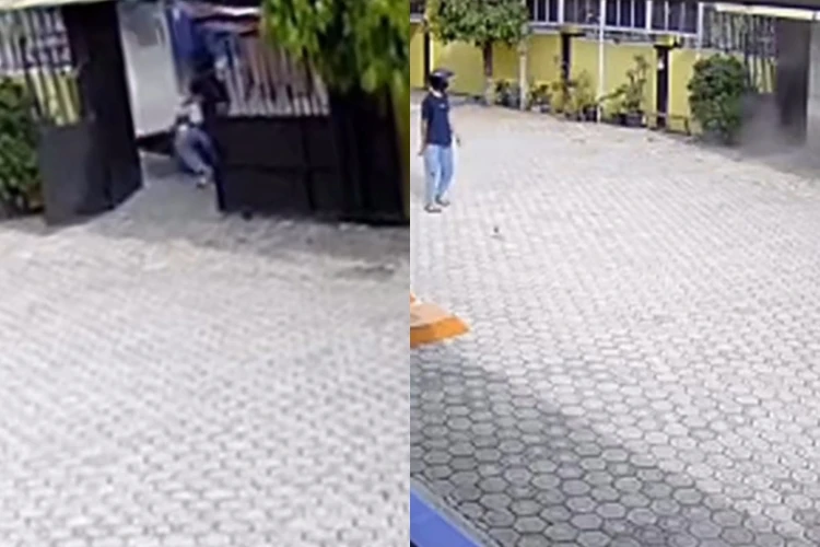 Dalam video yang beredar, terlihat bagaimana pria tersebut dengan sigap meninggalkan sepeda motornya dan berlari menuju rumah warga ketika bus melaju kencang ke arahnya.