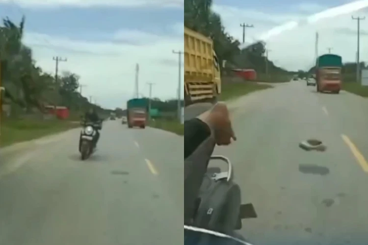 Momen tersebut menjadi sangat menegangkan dan menciptakan kepanikan di antara pengguna jalan lainnya.