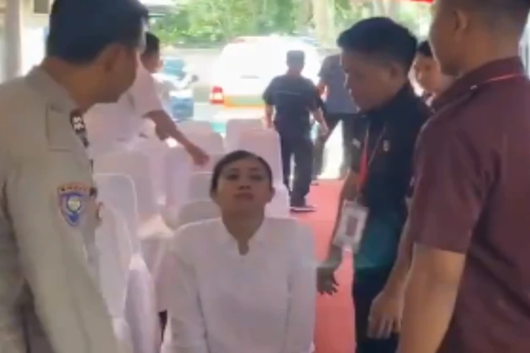 Tangkap layar video yang menampilkan seorang perempuan peserta tes CPNS di Lombok yang tiba-tiba kaku Source: (Foto/Twitter/@bacottetangga__)