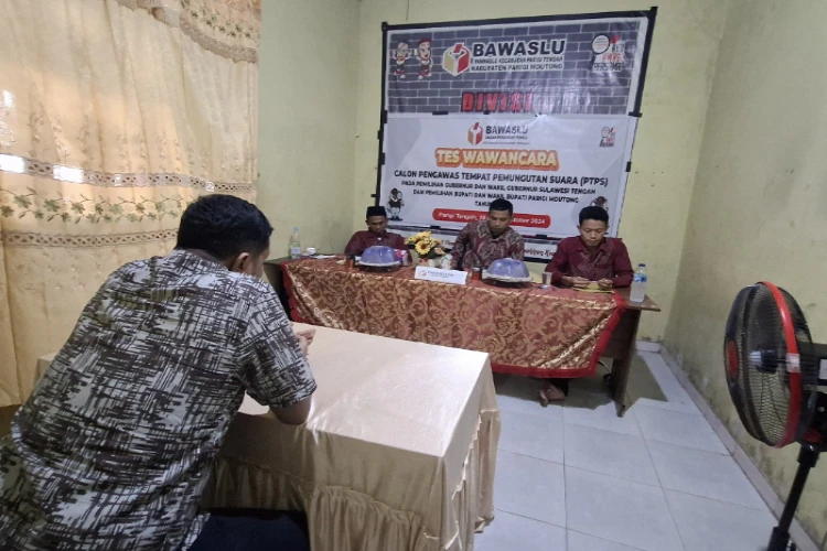 Parigi Moutong, gemasulawesi - Pada hari ini tanggal 18 Oktober 2024, Panitia Pengawas Kecamatan atau Panwascam Parigi Tengah, kabupaten Parigi Moutong, melakukan wawancara terhadap 23 orang calon pengawas TPS untuk pilkada serentak nanti.