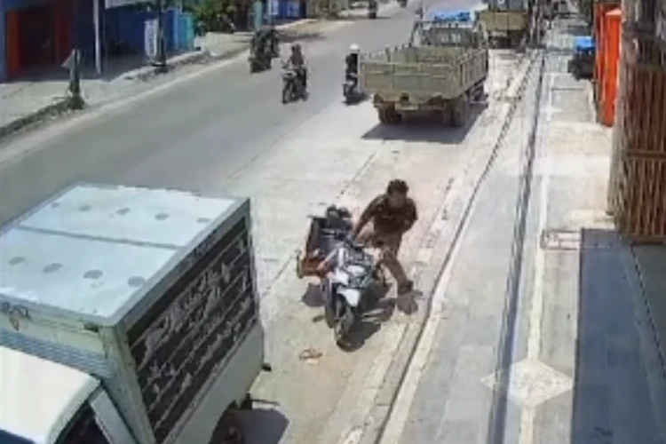 Blora, gemasulawesi - Viral di media sosial detik-detik seorang pria melakukan pencurian motor kurir di Cepu, Blora, Jawa Tengah.