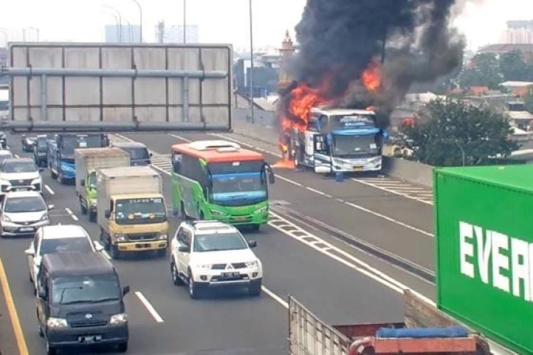 Jakarta Timur, gemasulawesi - Peristiwa yang menegangkan terjadi ketika satu unit bus pariwisata yang mengangkut 58 anak TK mengalami kebakaran di Jalan Tol Wiyoto Wiyono, kawasan Jatinegara, Jakarta Timur.