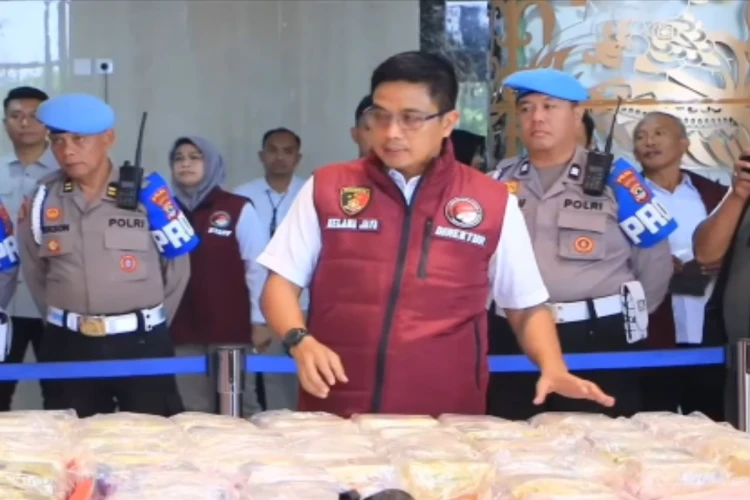 Tangkap layar video yang memperlihatkan barang bukti narkotika hasil dari penangkapan jaringan Fredy Pratama
