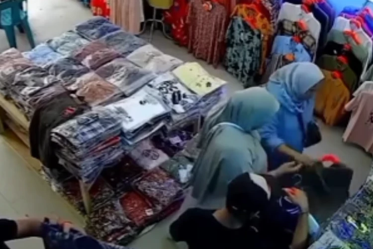 Pada rekaman kamera CCTV yang viral tersebut, tampak mulanya ada dua orang emak-emak di salah satu toko pakaian.