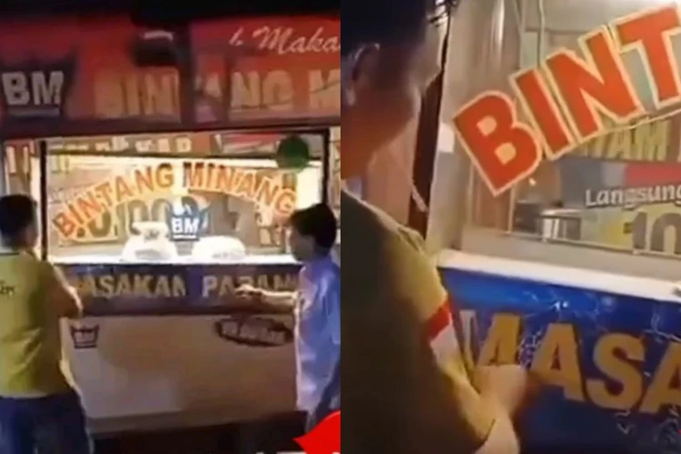 Video tersebut menampilkan aksi dua anggota ormas yang mencopot stiker “Masakan Padang” di etalase rumah makan.
