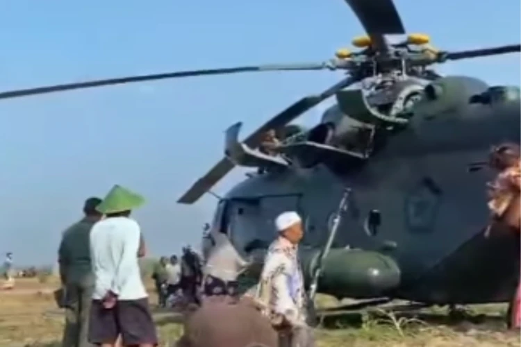 Video yang beredar memperlihatkan helikopter MI-17 melintasi area persawahan dan kemudian mendarat di lokasi yang aman.