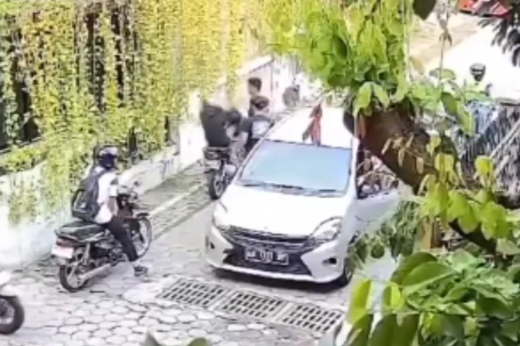 Jogja, gemasulawesi - Seorang pengemudi mobil di Yogyakarta atau Jogja terekam memukul seorang pengendara sepeda motor di sebuah tikungan.