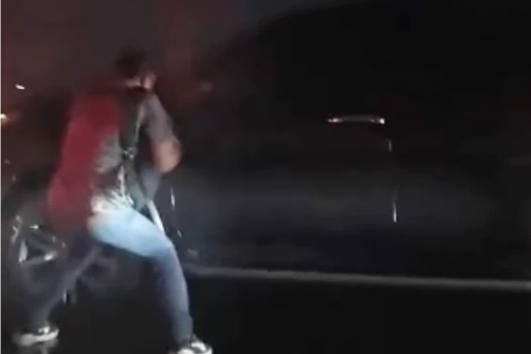 Meski kejadian berlangsung di jalan raya yang ramai, tidak ada orang yang tampak berusaha menghentikan aksi pria tersebut.