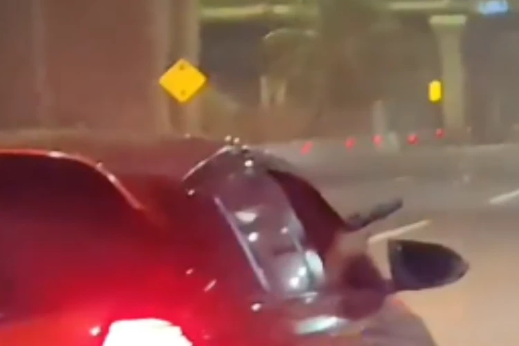 Dalam video yang beredar, pengemudi mobil merah terlihat mengeluarkan tangannya sambil memegang senjata api, mengarahkannya ke arah pengemudi perekam.