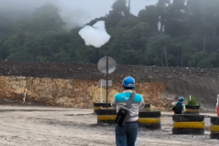Dalam video tersebut, terlihat gumpalan awan putih perlahan turun dari atas, mengarah ke area pertambangan.