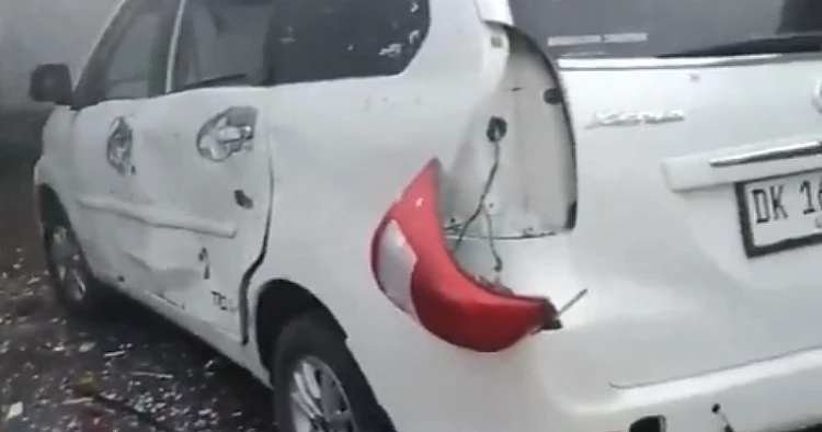 Tangkap layar video yang menampilkan mobil yang mengalami kerusakan karena balon udara berisi petasan meledak Source: (Foto/X/@bacottetanggaid)