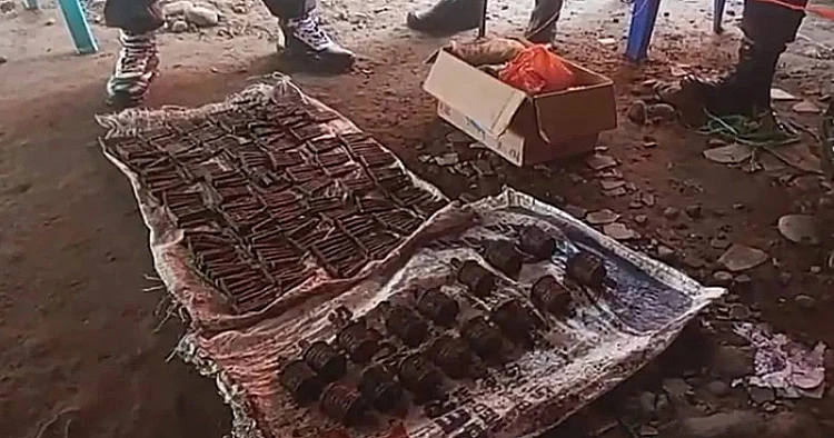 Potret belasan granat aktif yang dimukan di Kawasan hunian sementara pengungsi erupsi gunung lewotobi laki-laki Source: (Foto/ANTARA/tangkapan layar video Polres Flotim)