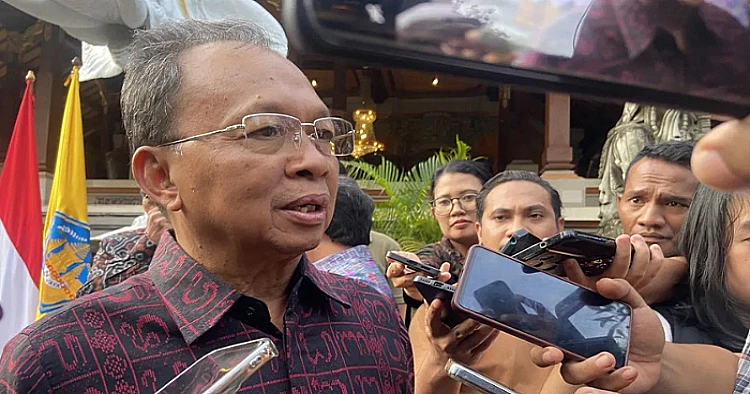 Potret Gubernur Bali Wayan Koster ketika menyampaikan keterangan kepada awak media
