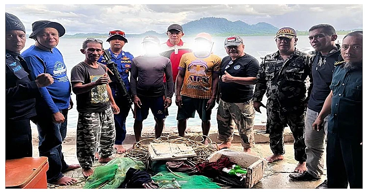 "Pelaku pengeboman ikan kami amankan setelah mesin perahu mereka mengalami kerusakan ketika mencoba melarikan diri," ujar Iptu Sodang Datuan, Kasatpolairud Polres Touna.