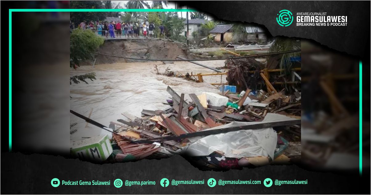 Ia menjelaskan, sejumlah ruas jalan terputus dan mengakibatkan jembatan penghubung jalan trans Sulawesi tidak dilalui.