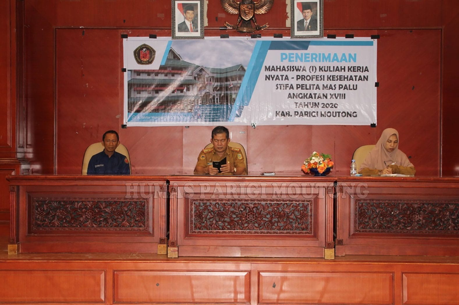 <p>Penerimaan Mahasiswa KKN STIFA Palu- Pemda Minta peran optimal mahasiswa KKN STIFA edukasi warga terkait kesehatan untuk cegah stunting. Kegiatan berlangsung di aula Kantor Bupati Parimo, Senin, 13 Januari 2020. HumasFoto/Sidik</p>
