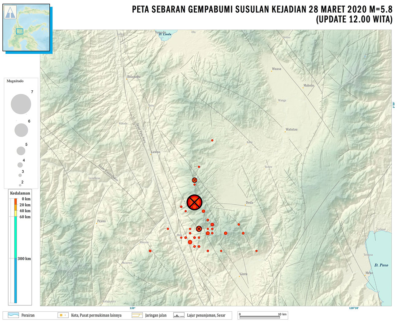 Peta sebaran gempa susulan di Sulawesi Tengah, Pasca gempa Sigi magnitudo 5,8. (Foto: BMKG Palu)