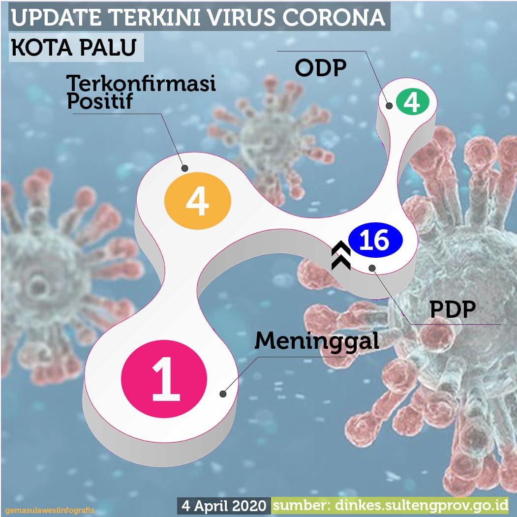 Berdasarkan penelusuran gemasulawesi.com, perkembangan data virus corona Kota Palu terkini per 05 April 2020 pukul 15.00 WITA. Terdapat satu PDP baru, bukan virus corona lima kasus, 16 PDP dan satu meninggal.