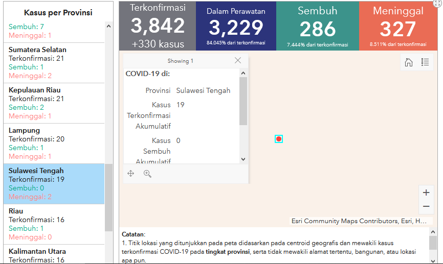 Berita Sulawesi tengah Data website gugus pusat percepatan penanganan covid 19 www.covid19.go.id, bertambah 5 terkonfirmasi dengan total 19 positif virus corona Sulawesi tengah (Sulteng) update per 11 April 2020.