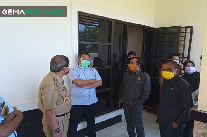 Wakil Bupati Parigi Moutong, Badrun Nggai didampingi Ketua DPRD Parimo, Sayutin Budianto dan Wakil Ketua I DPRD Parimo, Faisan Badja serta Kadis Kesehatan Parimo, Dr Revi Tilaar meninjau langsung tempat isolasi PDP, Senin 13 April 2020. (GemasulawesiFoto/Fikar).