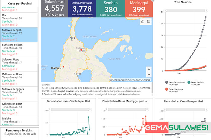 Berikut update data kasus virus corona di wilayah Sulawesi Tengah per 13 April 2020: