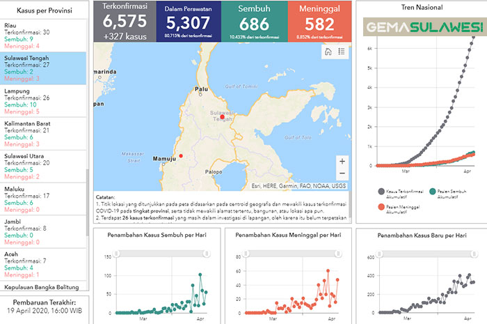 Berikut update data kasus virus corona di wilayah Sulawesi Tengah per 19 April 2020: