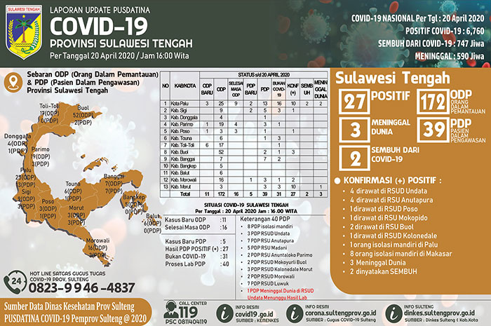 Data Terkini Virus Corona Pusdatina Sulawesi Tengah 20 April 2020.