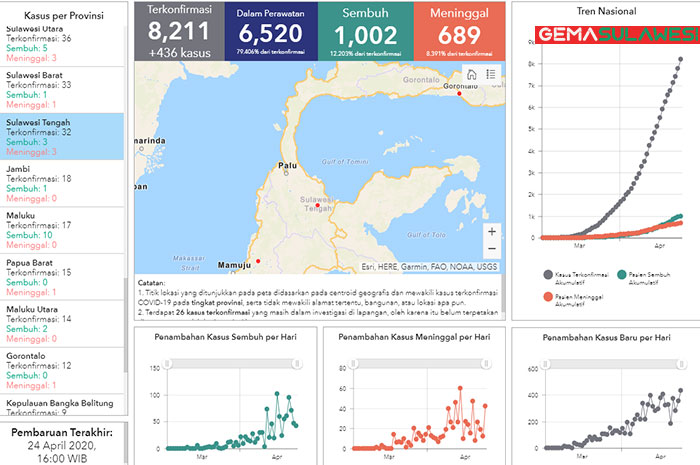 Berita sulawesi tengah, gemasulawesi.comData terkini situs resmi covid19.go.id, positif virus corona Sulawesi Tengah (Sulteng) tembus 32 orang.