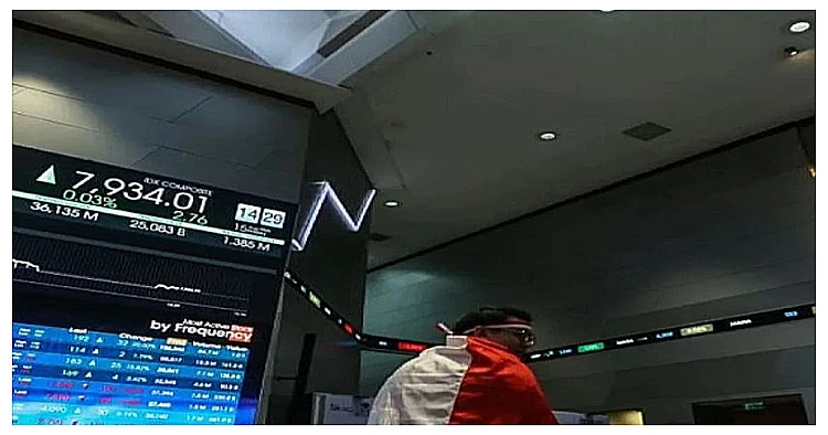 IHSG ditutup menguat 20,57 poin atau naik 0,26 persen ke level 7.957,69.