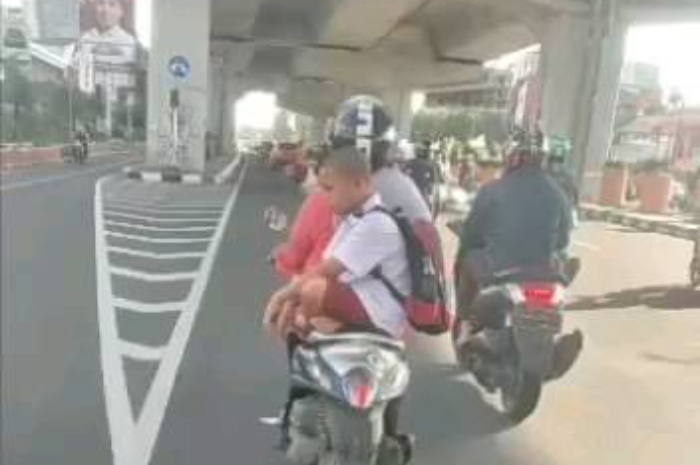 Dalam video yang beredar, bocah botak itu terlihat mengendarai sepeda motor di Jalan AP Pettarani, Makassar. Anak laki-laki tersebut mengenakan seragam Sekolah Dasar (SD) sambil menenteng tas. Dia terlihat santai sambil melihat kaki kiri bersila.