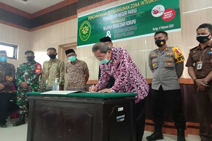 Pencanangan pembangunan zona integritas PN Parigi menuju Wilayah Bebas Korupsi (WBK) dan Wilayah Birokrasi Bersih Melayani (WBBM) berlangsung di kantor Pengadilan Negeri Parigi, Parigi Moutong, Sulawesi Tengah, Kamis 4 Februari 2021.