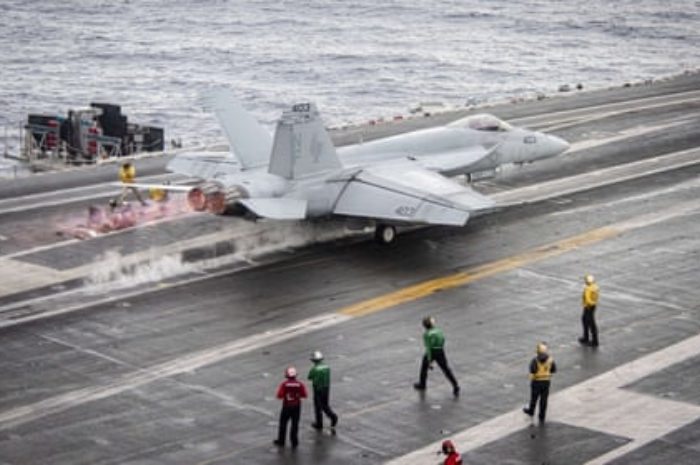 Keterangan Foto: US F/A 18E Superjet yang dirancang jika terjadi perang oleh AS, (Foto:/Twitter/USNavy)