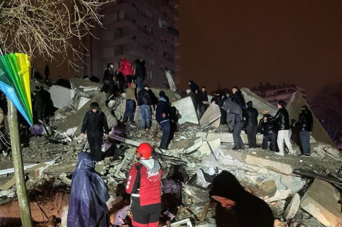 Gambar-gambar di televisi Turki menunjukkan tim penyelamat menggali puing-puing bangunan yang rata di kota Kahramanmaras dan gaziantep yang berdekatan, di mana seluruh bagian kota dihancurkan.
