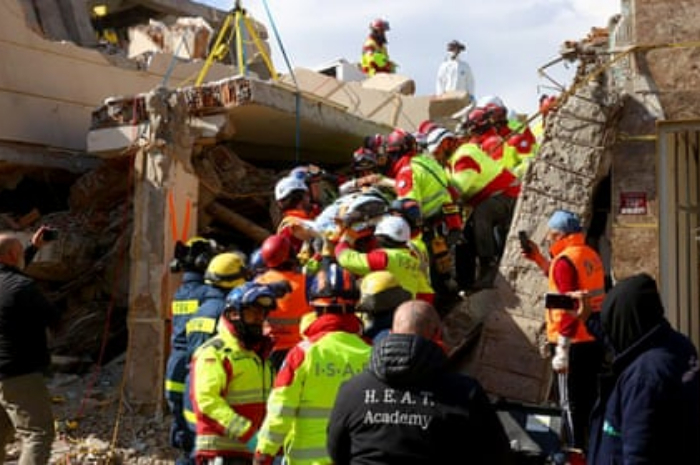 Dilansir dari Guardian, tim penyelamat yang berasal Jerman melakukan proses evakuasi dengan sangat hati-hati dalam mengangkat wanita bernama Zeynep Kahraman dengan usia 40 tahun dengan menggunakan tandu evakuasi melalui reruntuhan bangunan yang hancur di Kota Kırıkhan.