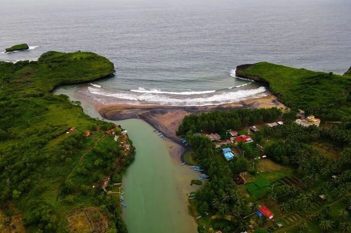 Kamu akan melihat ombak Laut Selatan yang menggulung dan berkejaran di pantai, sementara air sungai yang tenang menciptakan area yang lebih damai.