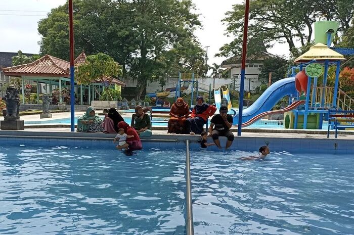 Tiket masuk untuk bermain dan berenang di sini hanya Rp20.000 per orang.