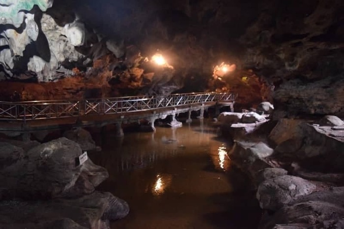 Dinding goa yang terjal dan dihiasi dengan stalaktit dan stalagmit yang menakjubkan menciptakan panorama yang mengagumkan.